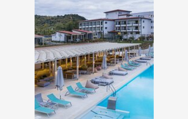 SADRŽAJ: Recepcija, lift, glavni restoran, a la carte restoran, barovi, spoljašnji bazen, dečiji bazen, igralište za decu, mini klub za decu, teretana, tereni za odbojku na pesku, fudbal i tenis, parking, wifi u zajedničkim prostorijama hotela