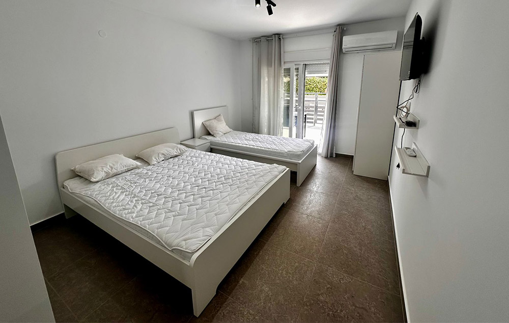 Opis: Jorgos lux je moderan i novoizgradjeni objekat ( 2025. godine ). Poseduje dvokrevetne i trokrevetne studije na prizemlju i prvom spratu. Svaka smeštajna jedinica poseduje opremljenu kuhinju, kupatilo/wc, terasu, TV, WiFi internet i klima uredjaj ( uključen u cenu aranžmana ). Promena posteljine i peškira je jednom tokom boravka. Zgrada ima lift i obezbedjeno parking mesto. Kvalitetno, moderno i ukusno sredjeni studiji, neposredna blizina svih sadržaja su prava preporuka za sve kategorije turista.